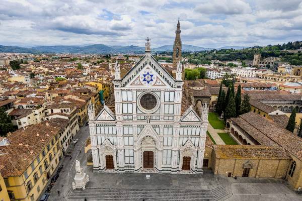 次に、サンタ・クローチェ教会を訪れました。この教会はフィレンツェの偉大な芸術家たちの墓所として知られており、ミケランジェロやガリレオの墓を見ることができます。教会内部も美しく装飾されていて、訪れる価値がありますよ。