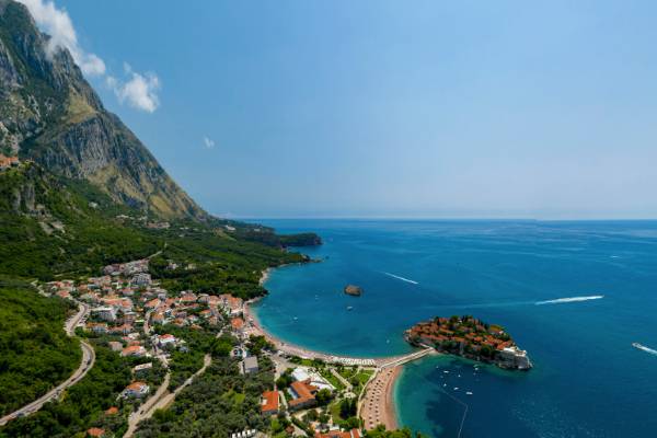 モンテネグロで最も印象的な場所のひとつが、スヴェティ・ステファンです。かつて漁村だったこの美しい島は、現在はラグジュアリーリゾートとして知られ、エリザベス・テイラーやソフィア・ローレンなどのセレブも訪れたことがある特別な場所です(→ エリザベス・テイラー – Wikipedia)。